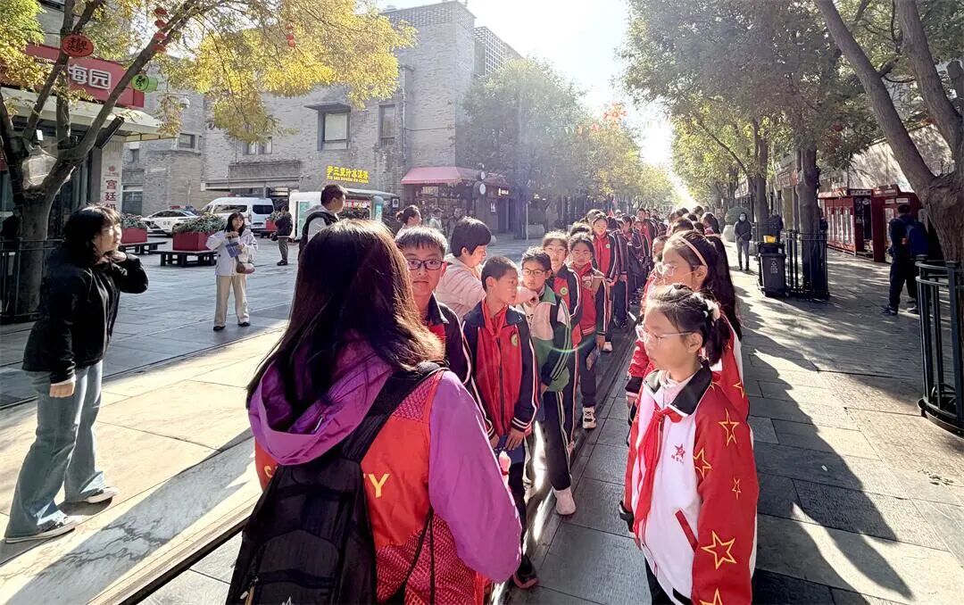 秋意渐浓,硕果可期,在这个充满收获与希望的时节,11月4日,北京市海淀区培星小学五年级5班与延庆四海小学、珍珠泉小学的同学们齐聚前门中轴线,开启了一场“手拉手”研学活动。三校学子先后打卡前门地标、走进北京青年报、探访荣宝斋,在中轴线的文化浸润与传统技艺的探索中碰撞灵感,在欢声笑语中凝聚友谊,谱写了校际合作共成长的美好篇章。