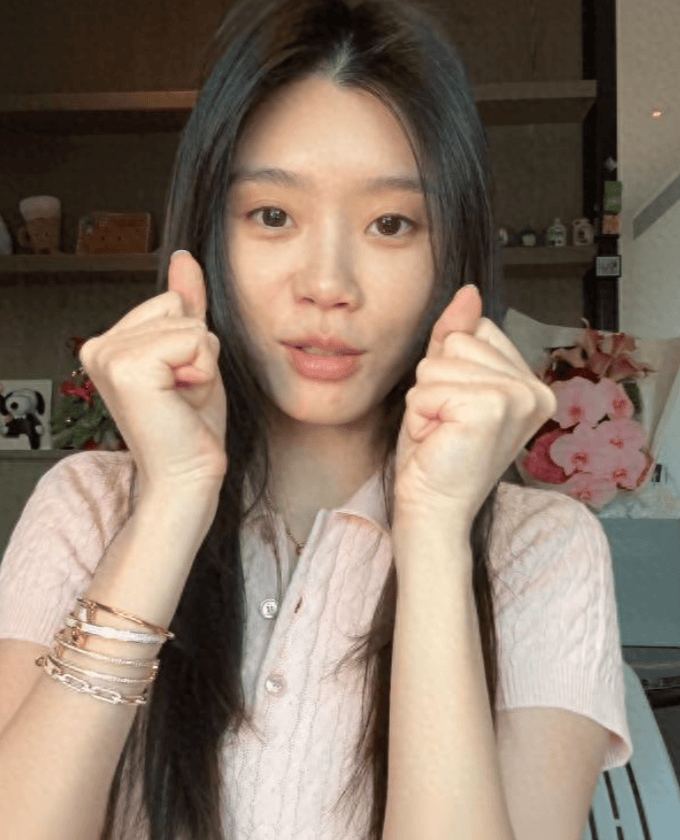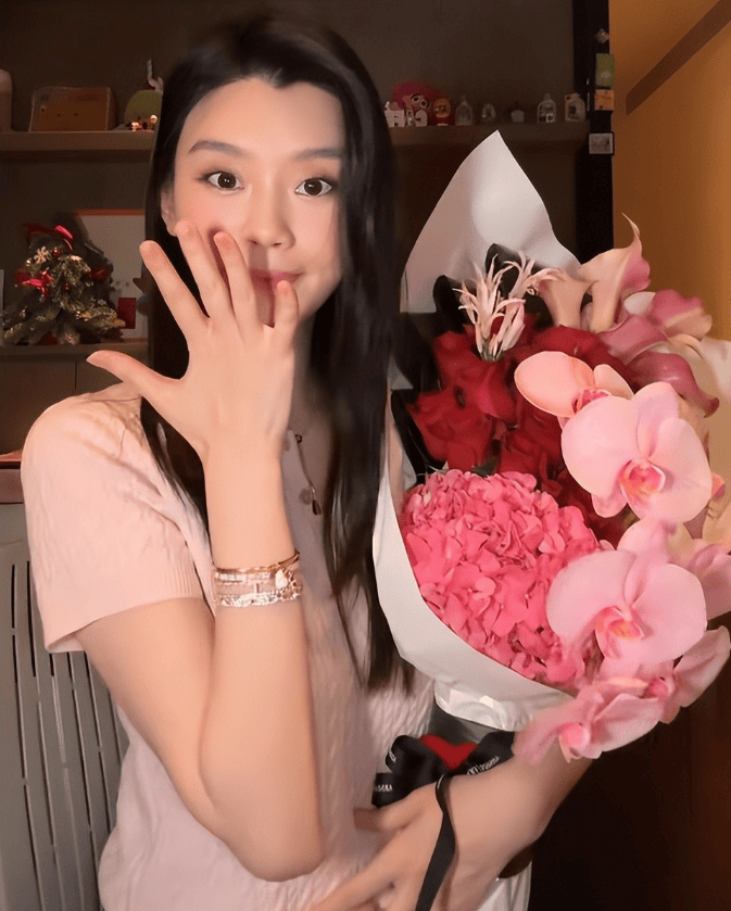 奚梦瑶素颜出镜好普!戴金项链和5个钻石手镯很炫,老公送花浪漫,许久都没看过奚梦瑶在荧幕中出现,不知道是不是以后都打算做富家太太了。