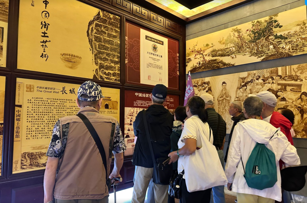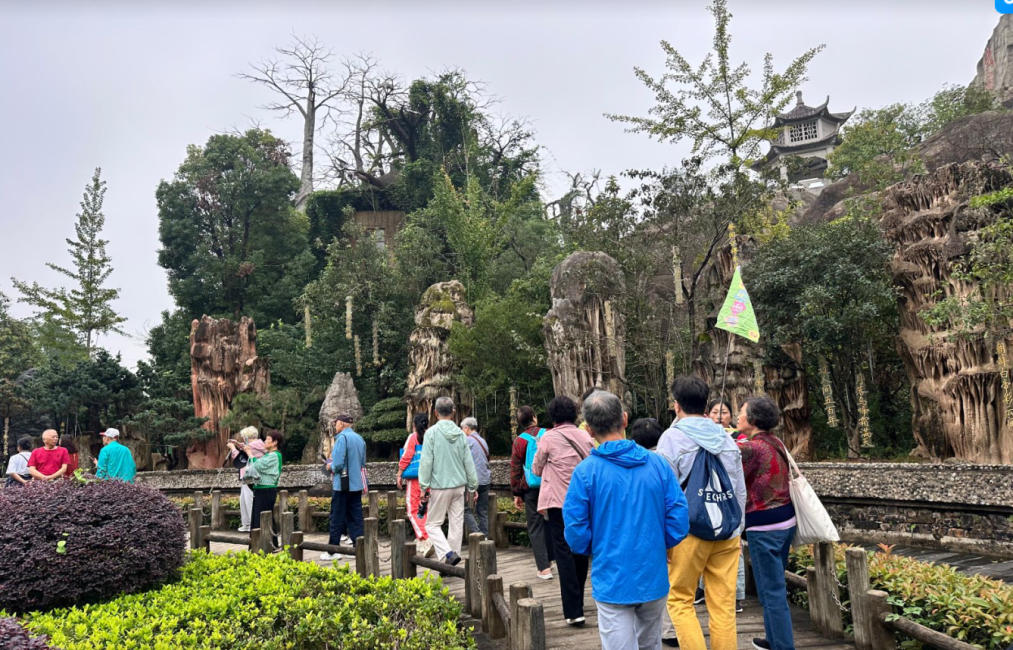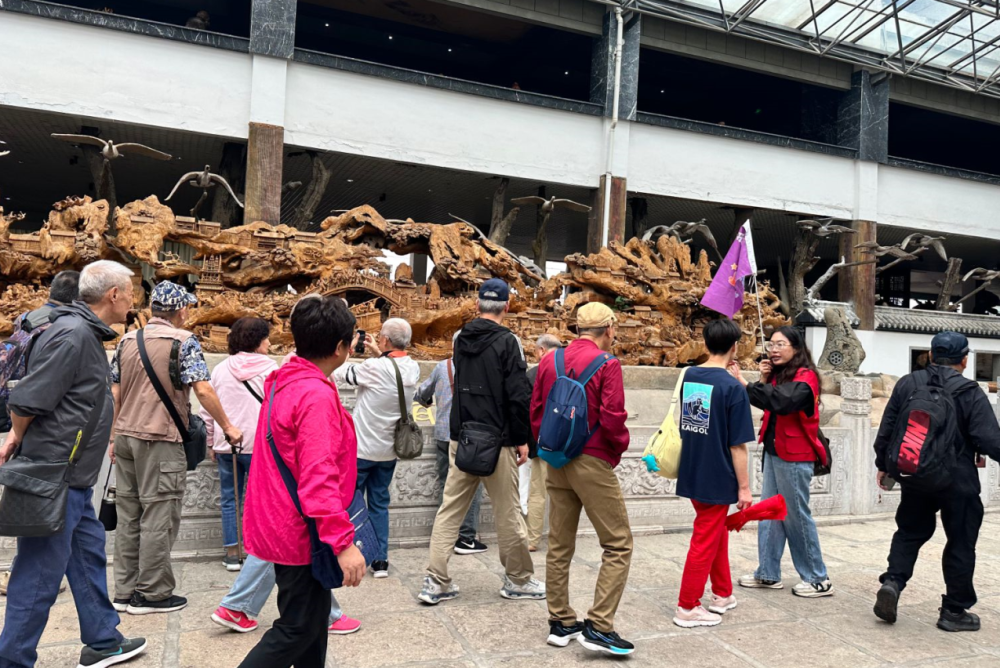 在此次行程中,五千年文博园以丰富的文化体验成为重要一站。景区提前做好服务准备,围绕康养游客需求打造特色游览动线。游客们或驻足于栩栩如生的历史人物雕像前,聆听专业讲解员讲述尘封的历史故事;或流连于根雕馆,惊叹于自然馈赠与匠人技艺的完美融合;或饶有兴致的驻足欣赏手工艺师傅们现场创作云草画、烙铁画,看着寻常材料在指尖渐渐化为艺术作品。远道而来的游客在慢游中感受中华优秀传统文化的深厚底蕴,脸上始终洋溢着愉悦的笑容。