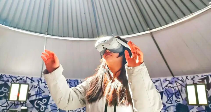 在武威市博物馆,借助VR真人讲解服务,游客得以在虚拟空间中开启一场跨越时空的“对话”,实现沉浸式观展体验。游客在聆听讲解的同时,还能通过操作手机滑动屏幕,360度全方位参观博物馆。汉唐天马城则运用场景虚拟还原、AR体感互动、全息舞台、5D动感全景展示等多媒体高科技手段,对凉州文化进行沉浸式展示。