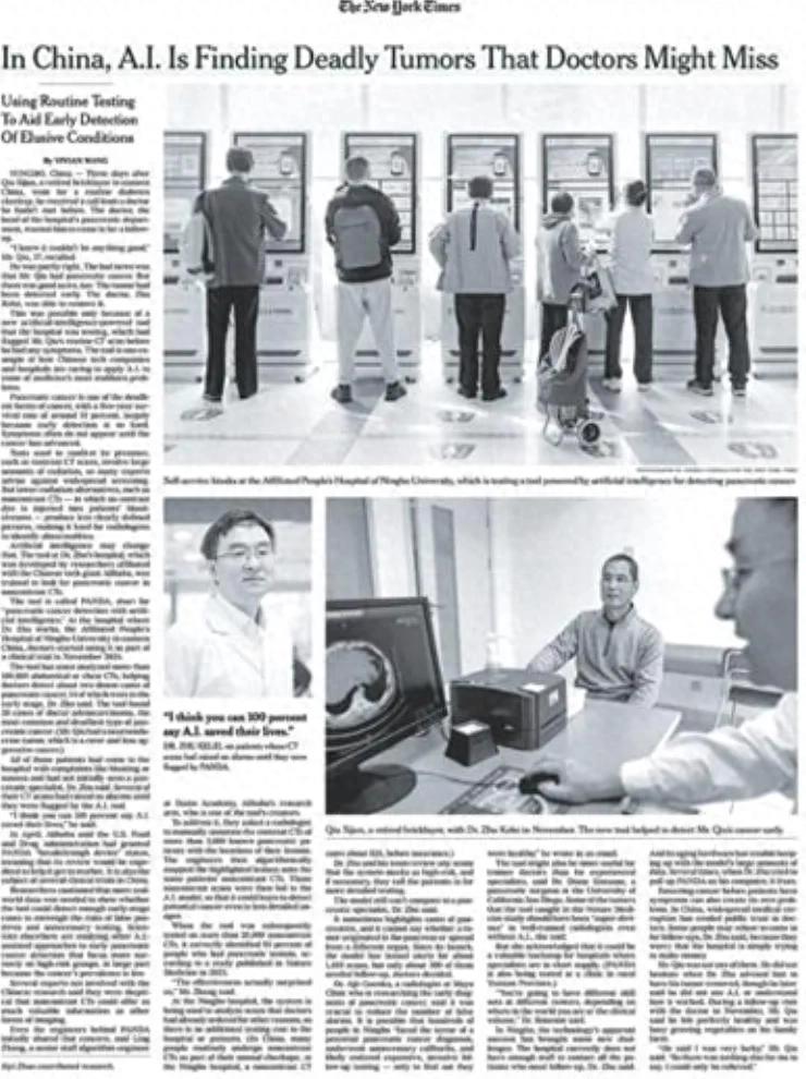 纽约时报更是用了《在中国,AI正在发现医生可能漏掉的致命肿瘤》这种肯定以及略带赞叹的标题!还有,细读这篇报道,字里行间能感受到一种微妙的“尴尬”与不得不认可的“客观”。因为它在详尽介绍技术原理与临床数据的同时,也谨慎地引述了西方专家的疑虑与提醒。