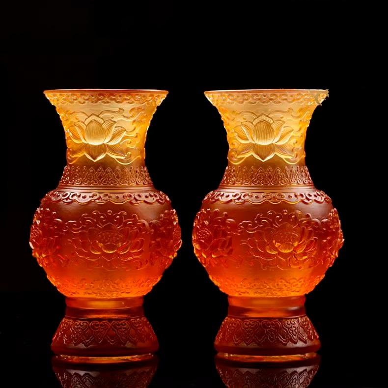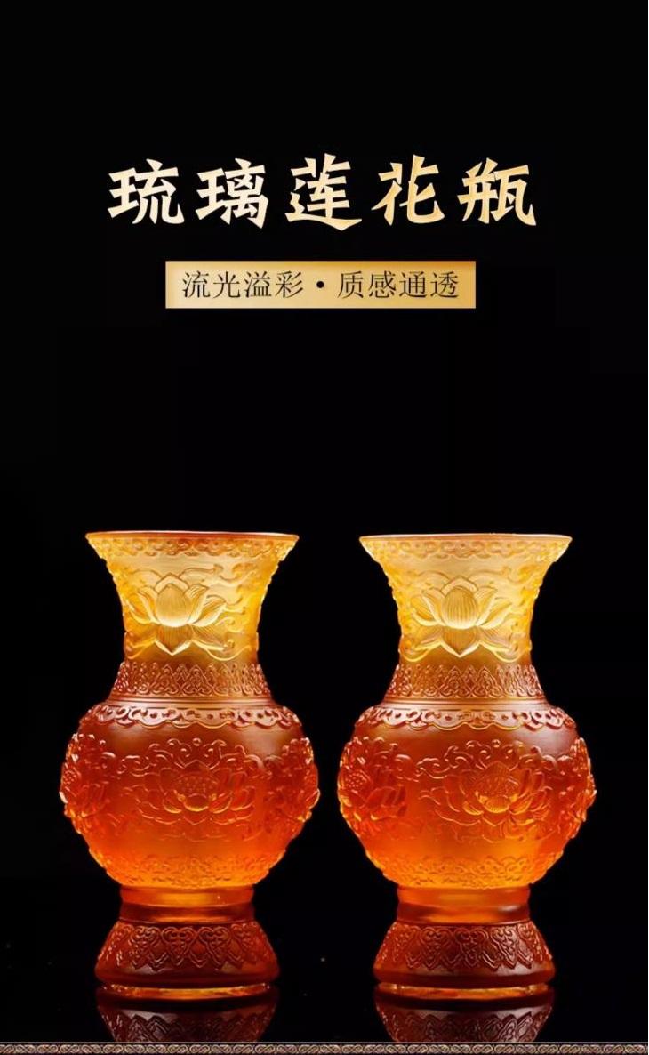 在办公场所,琉璃莲花福寿贡瓶也毫不逊色。放在办公桌上,能缓解工作的疲惫与压力,还能展现主人的高雅品味;摆设于接待区,可作为企业文化的一种体现,让来访的客户感受到企业独特的文化内涵 。它就像一个灵动的文化符号,无论身处何处,都能巧妙融入空间,为其增添独特的文化艺术氛围 。