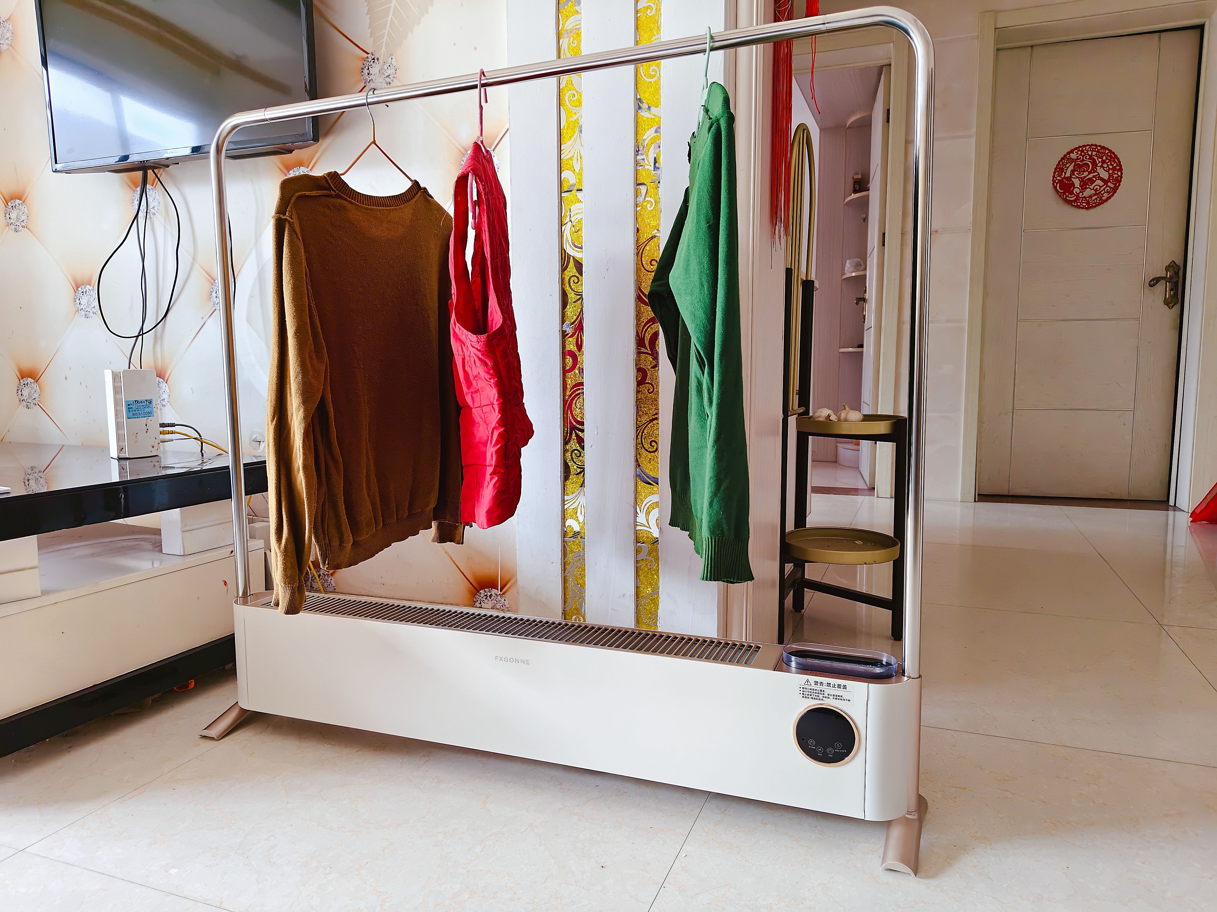 取暖的深层需求远不止于升温,还巧妙地将“干衣”融入设计。两端的隐形卡口旋开,装上晾衣杆,便成了温暖干衣区。从不过热,只以恒定暖流持续蒸腾湿气。晨间湿漉漉的外套,午后就已柔软干爽;下班前提前烘暖,出门时便能裹进一团恰到好处的暖意。