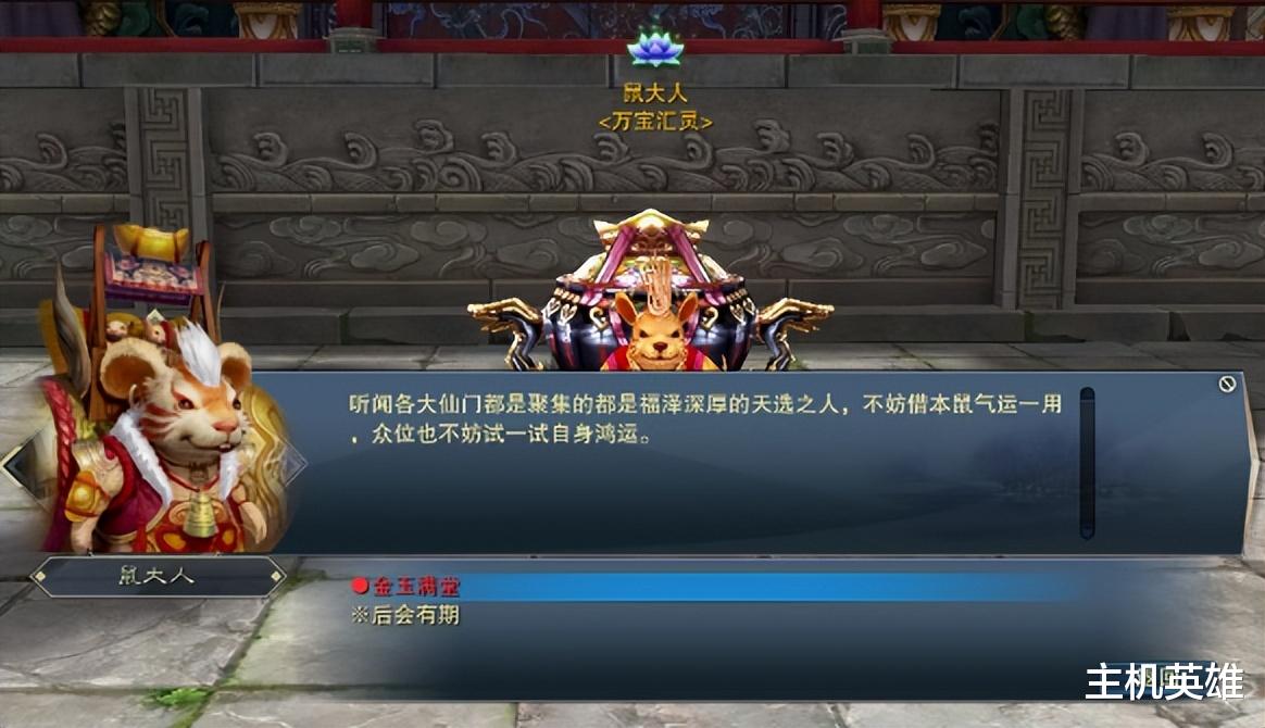 然后是抽卡玩法万宝汇灵,在游戏更新后前往河阳城找到NPC鼠大人,和它对话触发任务“金玉满堂”,就可以开启万宝汇灵的玩法啦,玩家可以通过完成每天的活跃任务来点亮汇灵盘上的图标,同时,系统会在每周三晚八点公布8个图标,只要玩家点亮的图标里有和系统公布的相同,并能连成一条线,就可以瓜分本轮次的奖池啦!