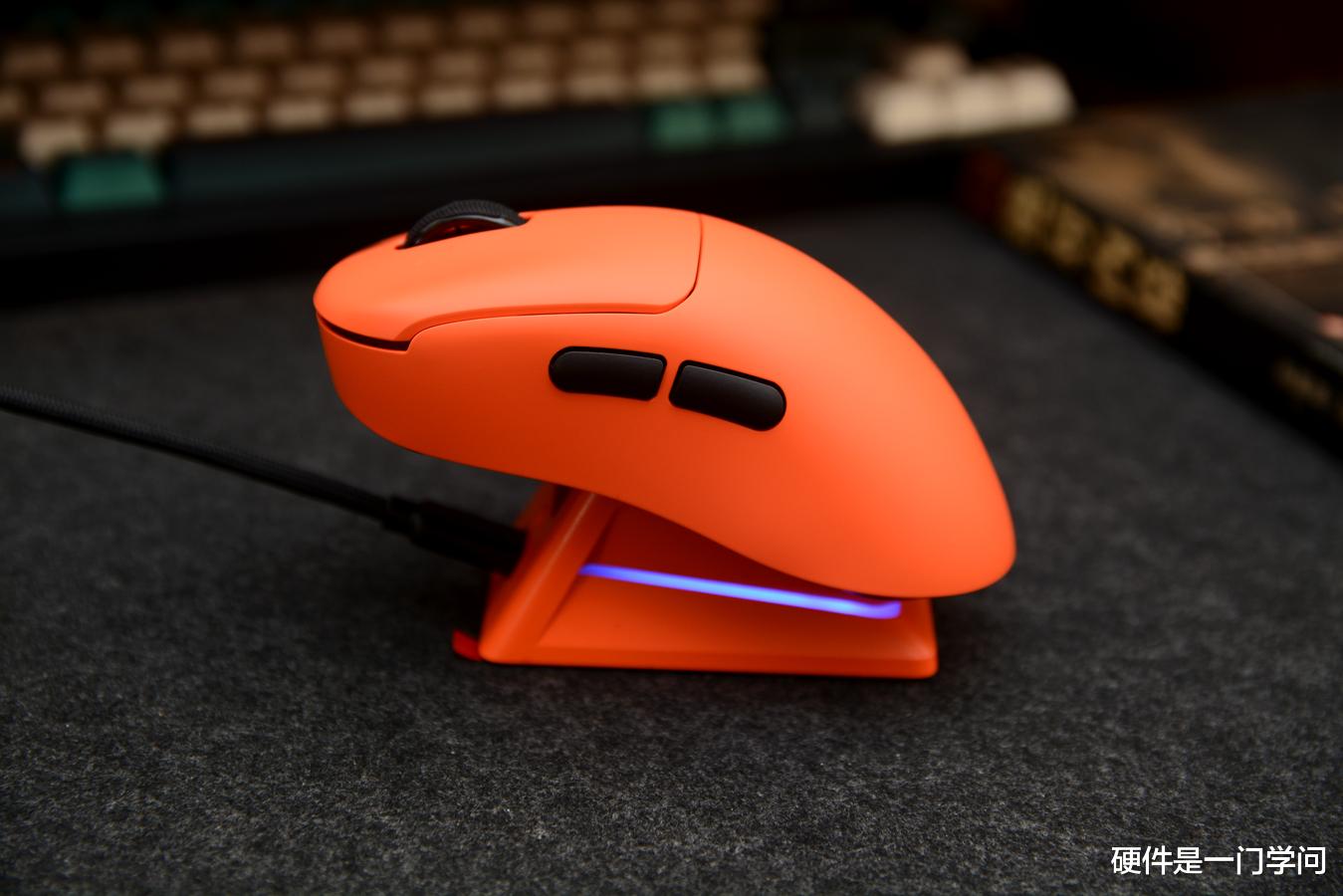 充电座中部配备了幻彩RGB灯带,预设6种灯效,可通过前部按键切换灯效。需要说明一下,充电座需要使用电脑USB口连接设备充电,或使用不超过5V的设备给产品充电,切勿使用大功率设备充电。鼠标内置800毫安电池,1KHz回报率下续航约750小时,8KHz模式下续航也能达120小时。