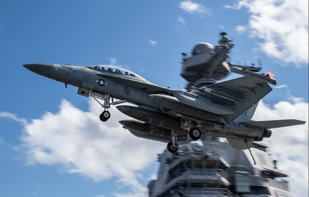目前,第8舰载机联队部署在这艘核动力航母上,虽然至少还未搭载F-35C“闪电Ⅱ”联合攻击/战斗机,但搭载了4个中队约44架F/A-18E/F “超级大黄蜂”战斗机、5-7架EA-18G “咆哮者” 电子战机和4-5架E-2D “鹰眼” 预警机、2-3架C-2A “灰狗”/CMV-22B运输机和10-12架MH-60“海鹰”直升机,舰载机的有65-71架军机。