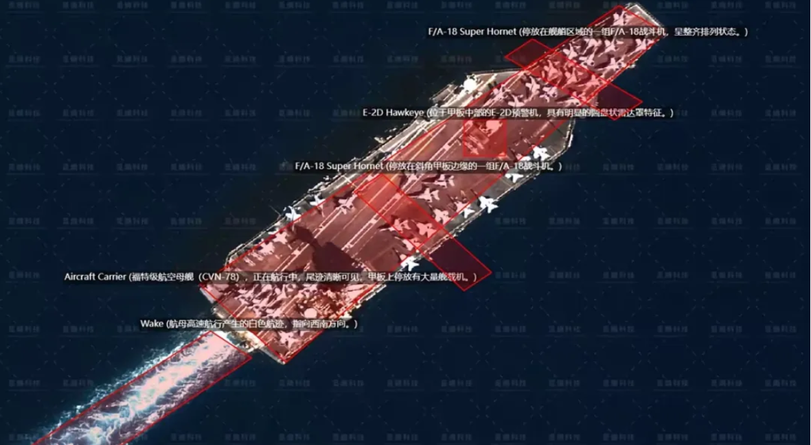 2月27日,中国商业遥感卫星公司觅熵科技发布了福特号(CVN-78)航母的高清卫星照片,甲板上停放有F/A-18E/F “超级大黄蜂”战斗机、EA-18G “咆哮者” 电子战机和E-2D “鹰眼” 预警机及MH-60“海鹰”直升机。
