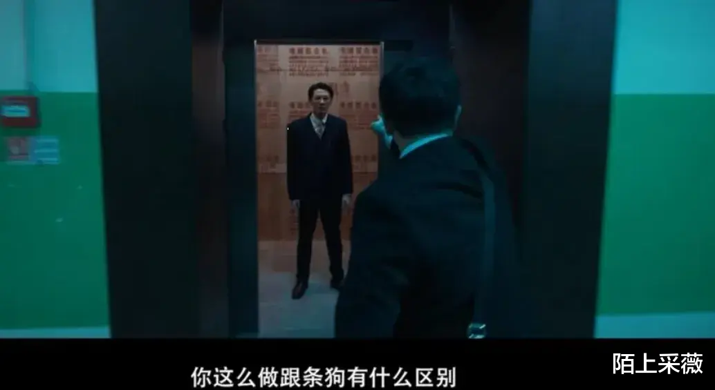 随着李淇和小汤来来回回的对话,电梯门也在反复的开开关关。在这段争执里,小汤代表的就是李淇心里的另一个自己,这是一个利益和正义的是非题,是李淇在和自我做着一场极限拉扯。