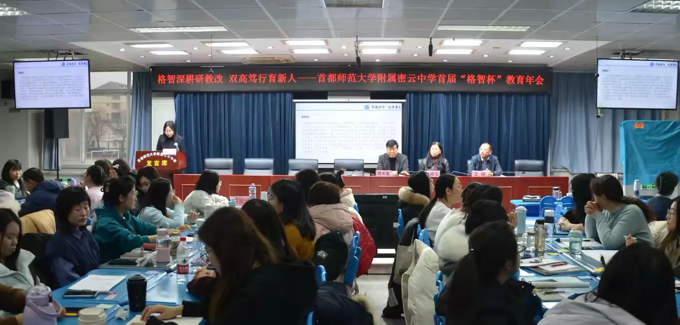 春风启新程,教研绽芳华。2026年2月28日,首都师范大学附属密云中学首届“格智杯”教育年会暨寒假教学实训活动如约启幕。本次年会以“格智深耕研教改,双高笃行育新人”为主题,立足新时代课程改革背景,系统呈现学校在课程建设、“双高课堂”实践、人工智能融合教学及科技教育等方面的阶段性成果。通过教学成果展示、学科特色沙龙、实践汇报、专家引领等多元路径,推动教研教改走深走实。