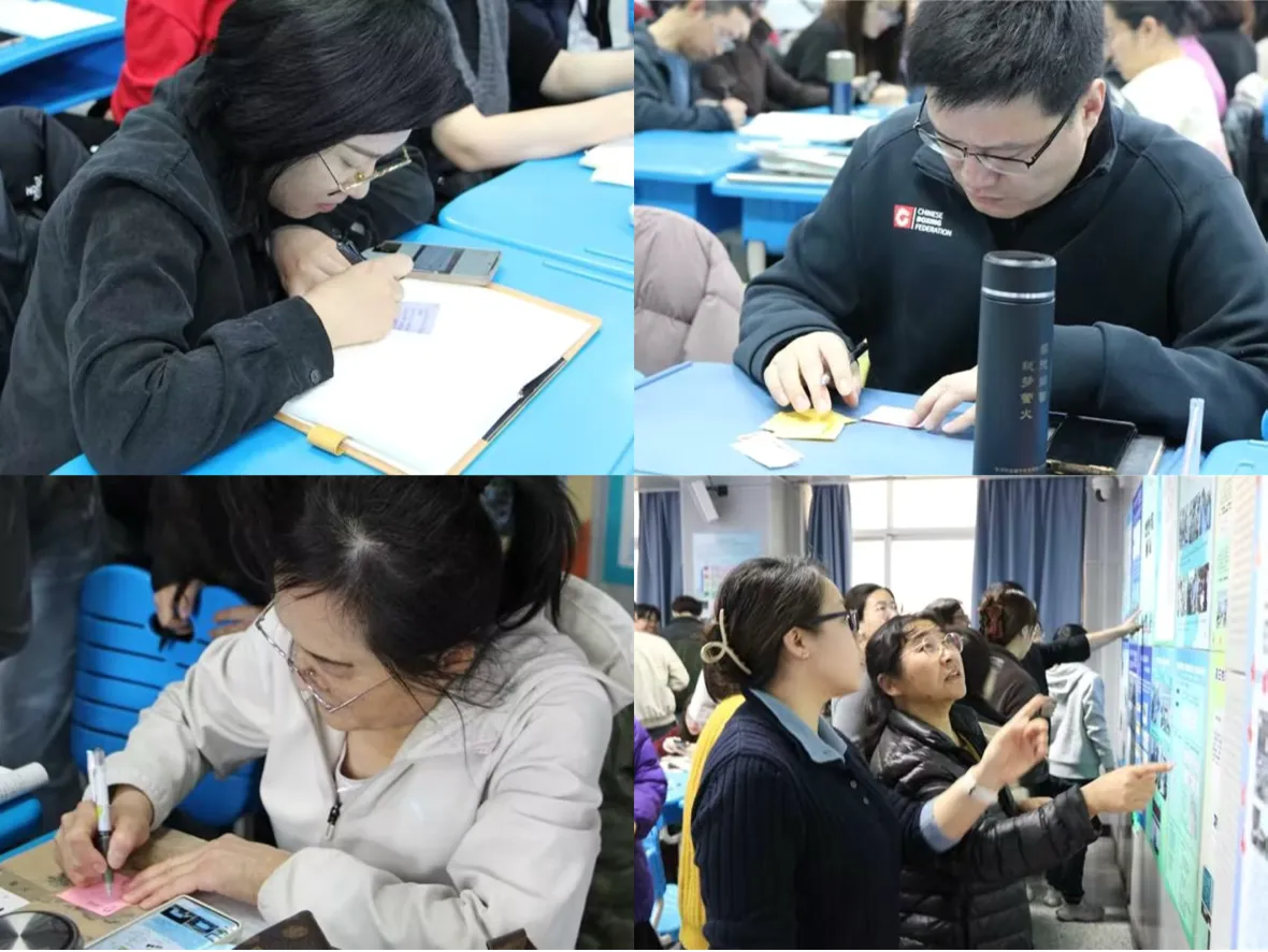 本次参观活动,让教学成果不再囿于纸面总结,而化为可看、可感、可评的鲜活海报,矩阵分区域立体布展的海报,吸引了老师们驻足细读,气氛热烈。现场设置的互动点赞机制,让成果分享增添了许多互动乐趣。活动聚焦“创新性”与“实用性”,让每一份深耕都获得真实回响,让每一次探索都在集体智慧中校准方向。