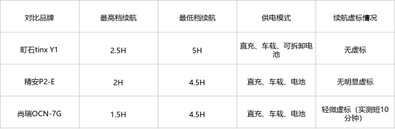 第二梯队的精安P2-E,续航表现也还可以,最低档4.5小时,最高档2小时,日常短途出门也能满足,但续航比町石短,而且没有可拆卸电池,电量用完了只能充电,不如町石灵活。