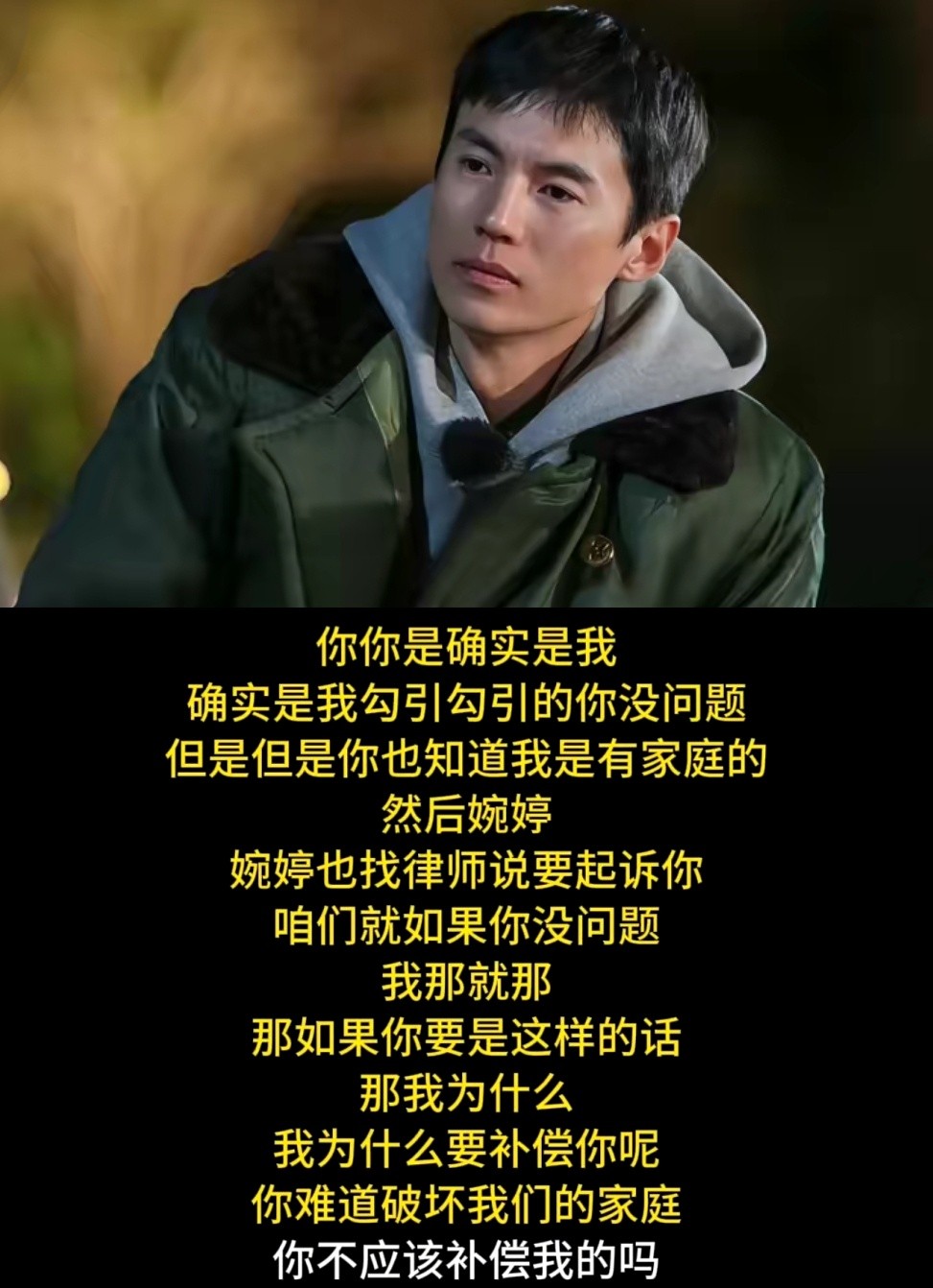 不仅以老老实实回家跟张婉婷养孩子为借口,试图踢开第三者,还有一段推卸责任的雷霆发言。