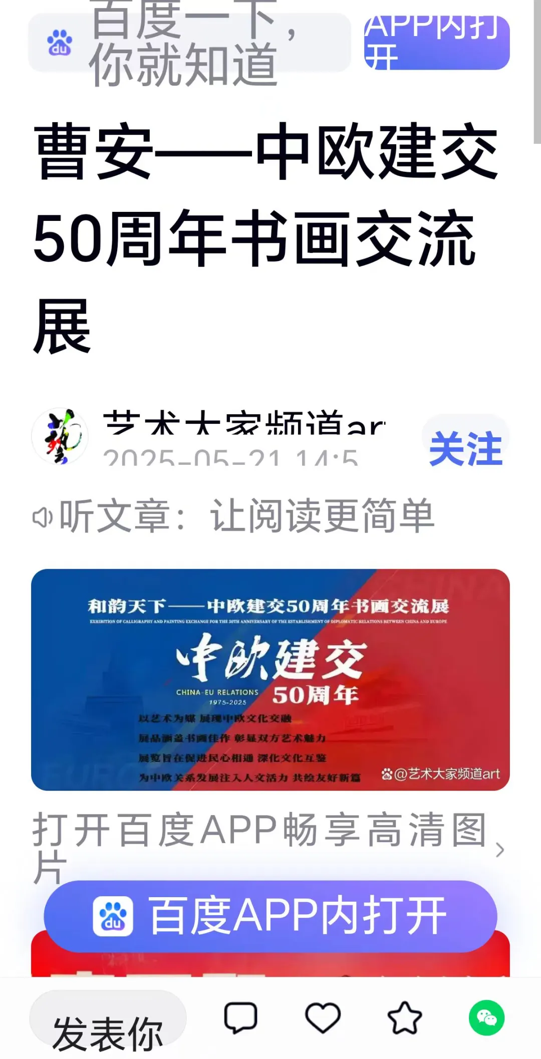 曹安   上海市人。 祖父为清朝的举人。 父亲为国民党元老,参加辛亥革命,北伐军 ,国民政府行政院长翁文灏的机要秘书,书法家。解放后,在华东军政委员会秘书处工作。 从小受祖父辈书法艺术的熏陶,耳濡目染,喜好二王,张旭,怀素的草书,也特别擅长草书。从中学时代起,一是酷爱书法,笔耕不辍,二是坚持健美运动,皆有六十多年。书法作品行云流水,大气磅礴,身材健硕,肌肉发达。原上海电视台,生活时尚频道————新家居栏目总监。世界非物质文化遗产研究院副院长。上海野马广告公司副总经理。上海鑫泰传媒有限公司总经理。上海新海派文化精英秘书长。大中华水墨丹青艺术研究院副院长。上海宏润书画院副秘书长。徐悲鸿书画艺术交流联谊会常务理事。汉唐书院高级书法师。曹安书画院院长。上海东吴书院副院长。上海唐曹书画院院长。上海南东书画院理事长。上海国祥书画收藏馆副馆长。早在60年代荣获全国青少年书法大赛一等奖。62、63年在上海市青年宫聆听沈尹默大师的讲课,指导,与周慧珺同桌的同学。80年代末,90年代初,二次陪同刘海粟大师,夏伊乔夫妇十上黄山。师从沈尹默、吴野洲大师。曹安的书法作品有浓重的古典情怀。笔墨精妙、酣畅遒劲、雄健清润、雅逸纯和。他的作品多次在全国书法展览和大赛中获奖,被多家博物馆和艺术机构收藏。他的作品在美国、法国、日本、澳大利亚…………多次巡迴展览,并多次在国内外艺术博览会上获奖。2004年为“澳中周末报”题写报头这五个大字,“澳中周末报”报头一直沿用至今20多年,在澳大利亚家喻户晓,享有盛誉。后来周志高也为这家报刊题写了副刊。2018年9月3日参加上海第十届书法篆刻大展。2018年10月27日,加入中国🇨🇳 影迷联盟,先后荣获影视大鳄邓建国亲自颁发的股权证书二张。2019年荣获书画艺术从业者人才库,全国书画大师数据库 ,入库证书……国家一级美术师,中国杰出艺术家。2016--2019入选印刷中国文化进万家台历。2020两会重点推荐书法家曹安。2021元旦专题德艺双馨艺术家曹安。2023年3月13日  中央电视台《艺术传承》栏目组  特聘曹安为客座教授。百度APP时代风华2023年4月16日发布当代书画名家——曹安。百度及各大媒体……甲辰2004龙年全国优秀艺术家  曹安  精品日历线上展。艺术茅台——祥龙呈瑞——中国书法名家曹安2024新春贺岁。翰墨迎元旦,丹青绘新篇——曹安。曹安——荣登2025官方媒体推荐热门收藏艺术名家人气榜单。 顶级艺术鉴藏   ☞☞☞2025中国书画收藏投资风向标  曹安 。     曹安   ……中欧,50周年书画交流展等等    。曹安作品在百度、搜狐、凤凰网、人民网、腾讯、网易、一点资讯、今日头条、UC头条、微信平台都有新闻专题报道。