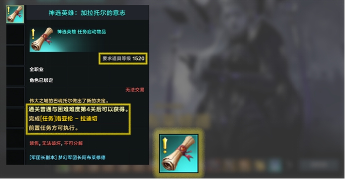 梦幻军团长【困难】上线,大家应该比较熟悉了,P1-P3要求装等1540很合理,P4要求装等1560略微有点高,不过只要过了P4,无论是简单还是困难,都可以开启新任务,神选英雄武器,也就是外服的艾斯特武器。