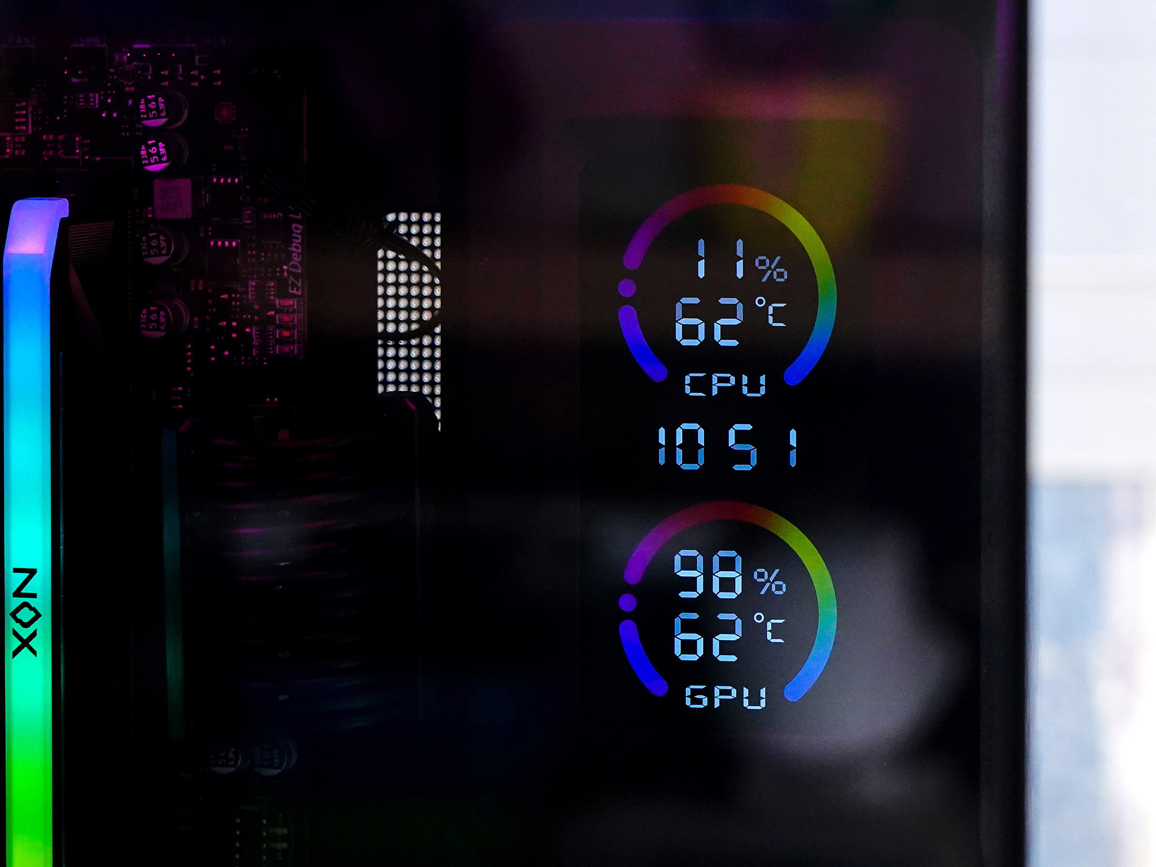 ▼如果是玩游戏,在大部分时间内CPU温度都是60~70°C,还是非常清凉的(星璨 小岚屏显版机箱自带屏幕,可以显示CPU和GPU的温度)。