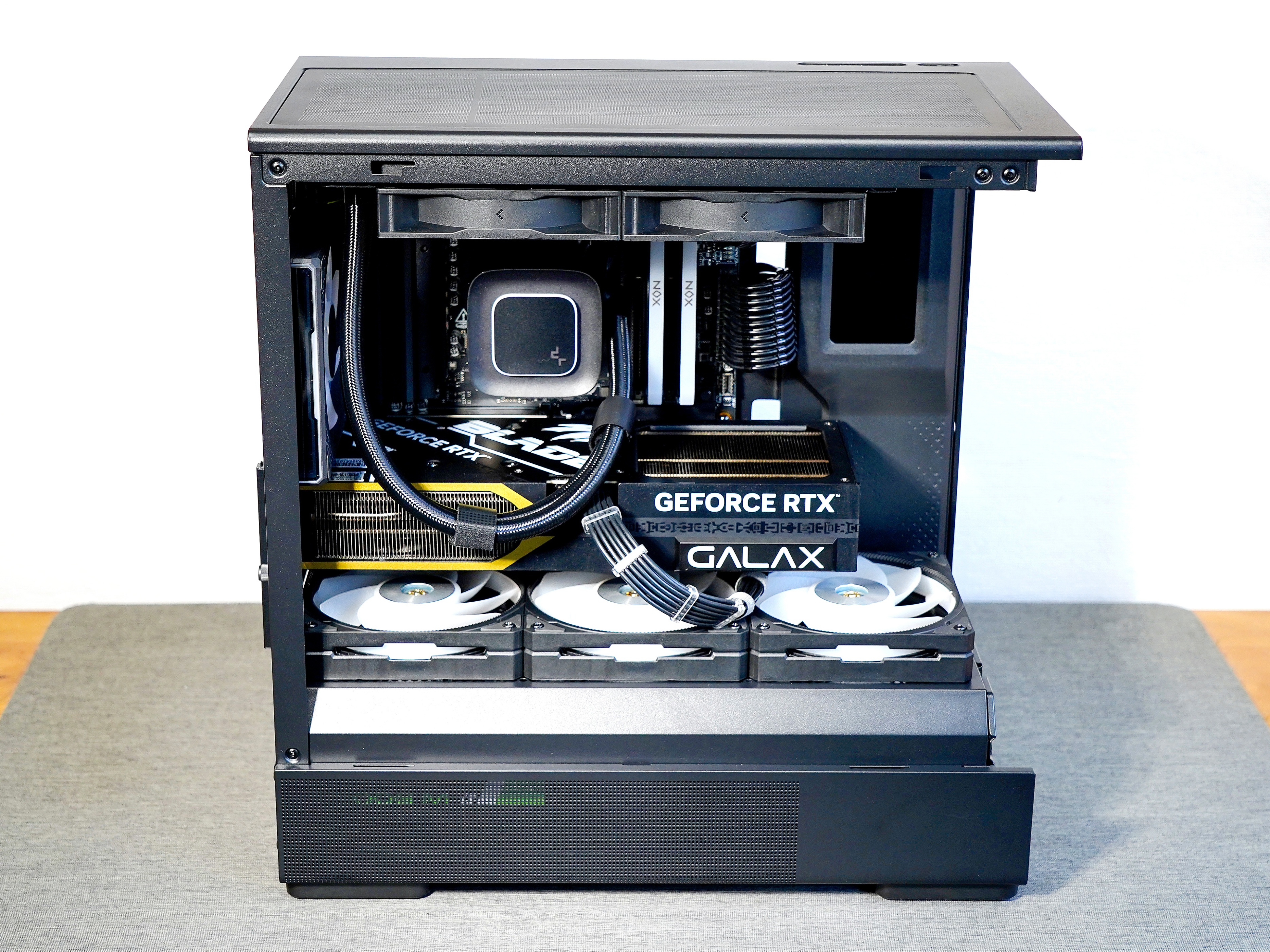 海景房主机内部的硬件相比一般侧透机箱会被更清晰地展示出来,所有硬件基本都是以黑色为主色的,形成统一的风格。