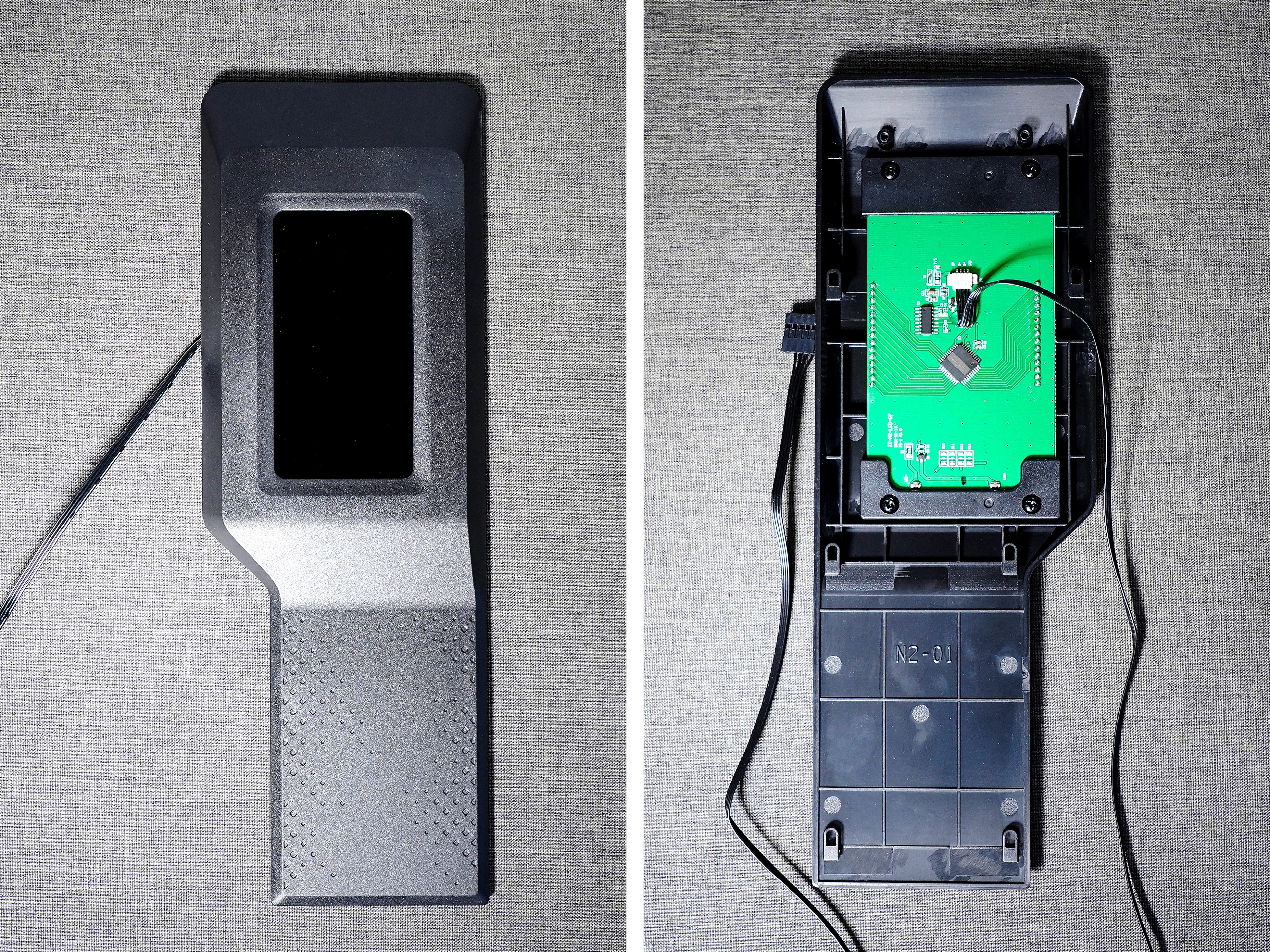 ▼前面的镂空面积很大,占了一小半的面积,内部没有PCB,这样进风可以直接贯穿散热鳍片,提高散热效率。