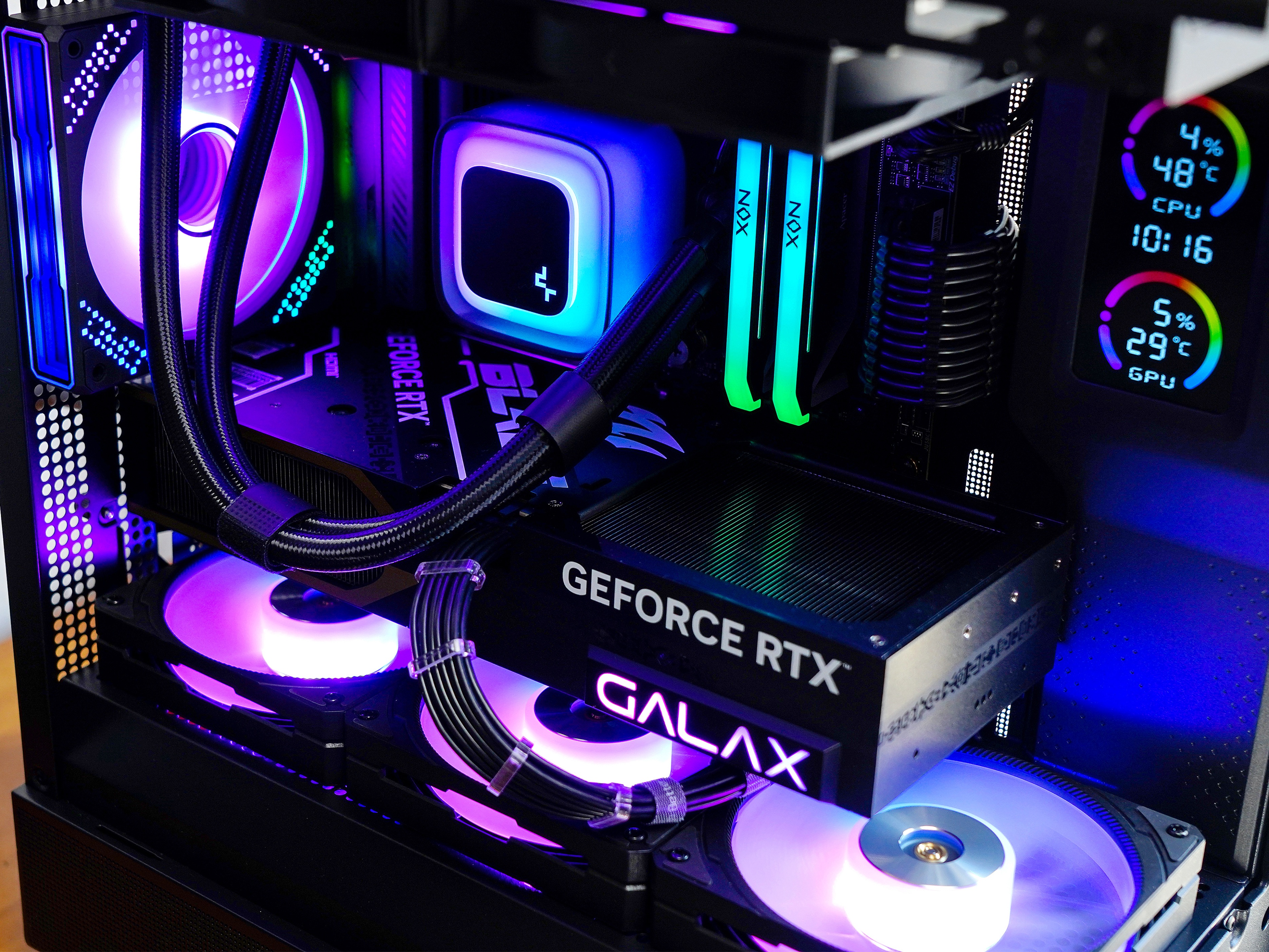 ▼“GALAX”的logo具有ARGB灯效,并且这是一个磁吸模块(金属触点供电),可用拆下放到另一个地方。