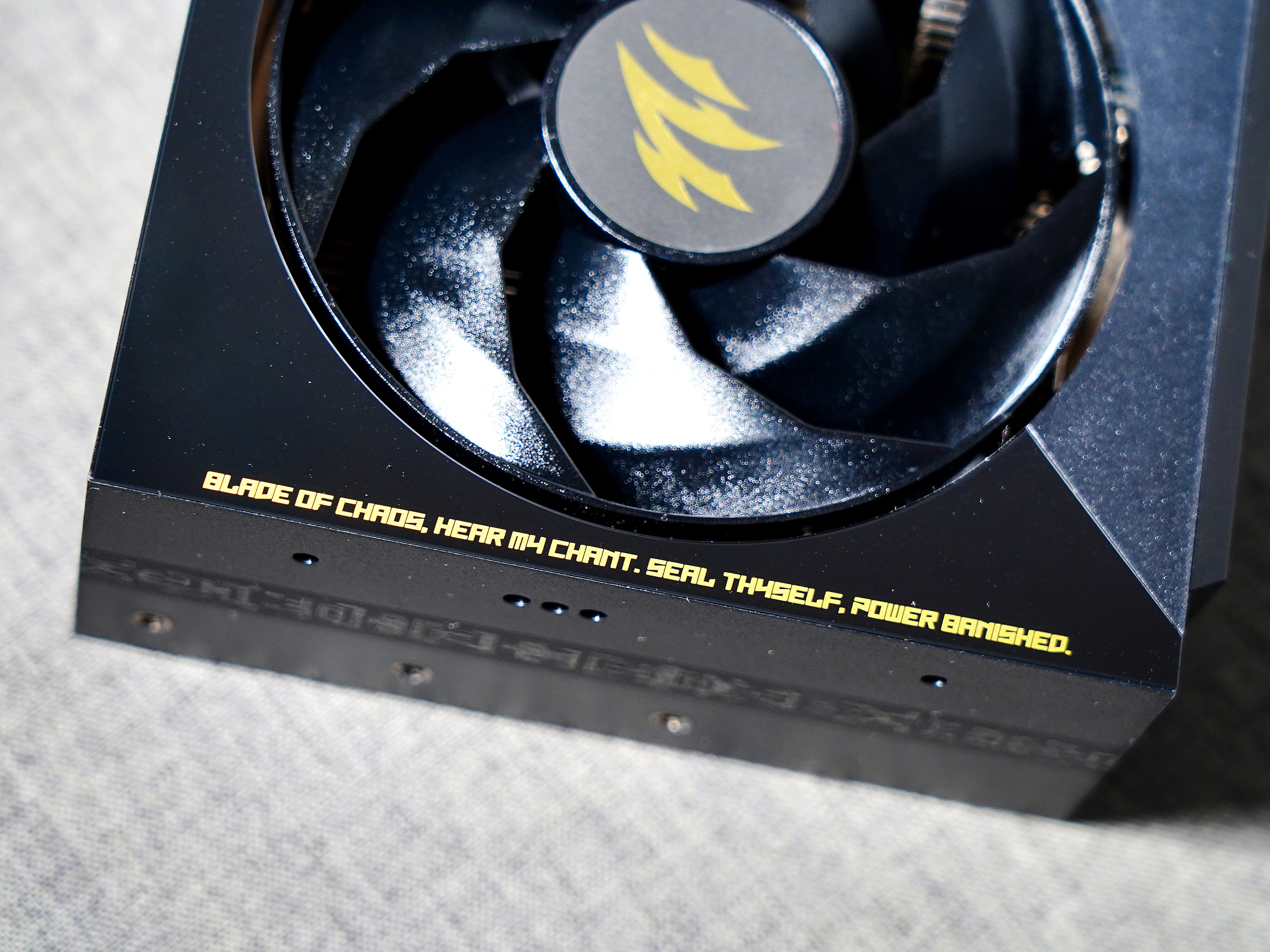 ▼显卡前端还有一行黄色的小字:Blade of Chaos, hear my chant, seal thyself, power banished.(混沌之刃听我吟唱,封印自身,放逐力量,于虚空之中陷入沉睡束缚),是不是有点内味了?