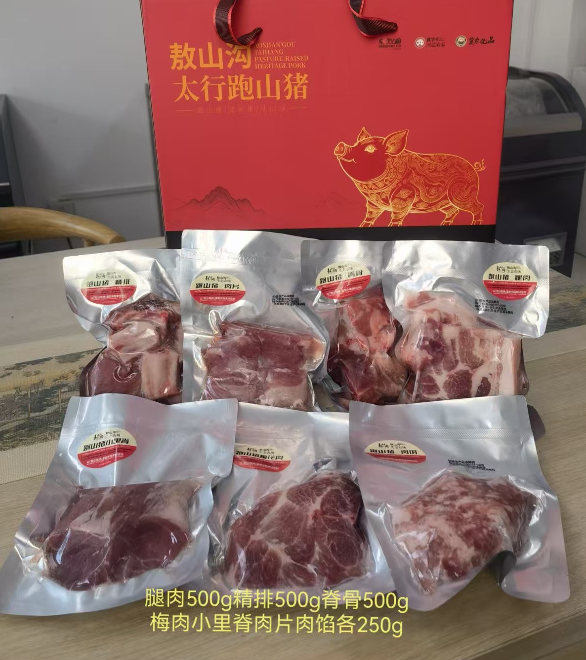 是“敖”在山川岁月里,筋骨铿锵,在时光的窖藏中沉淀本真。敖山沟跑山猪,承袭大兴安岭野猪之奔放、松辽黑猪之丰腴、杜洛克猪之健硕;三元杂交,血统中自带山林的记忆。它们徜徉于千年古县赞皇三千亩太行山林深处,饮山泉,餐野果,沐暖阳,逐日影,在肆意奔跑中将旷野的精华凝入肌理。这种近乎原始的生态放养,方成就其肉紧实而不柴,香醇直抵骨髓的独特口感卓然风味。