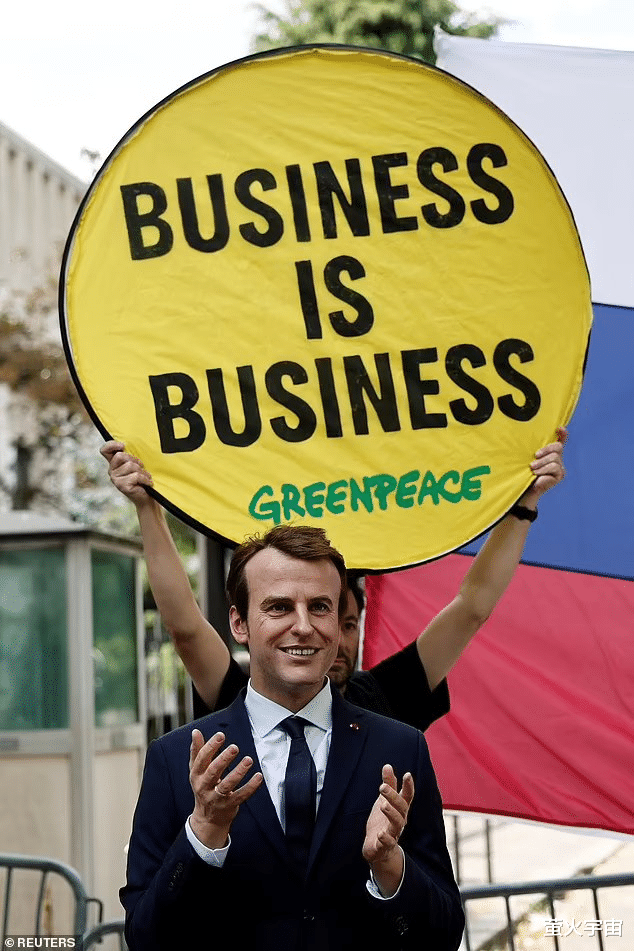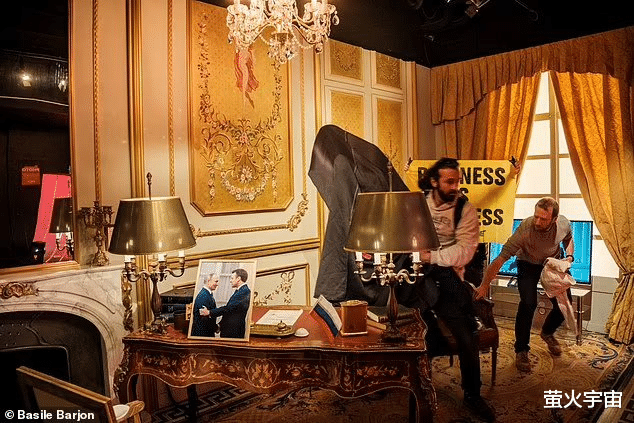 掠走蜡像的人来自“绿色和平组织”(Greenpeace),他们还在社交媒体上发布了将蜡像带走时的画面。虽说带走了蜡像,但他们也留下了一些东西,俄罗斯的国旗以及多年前马克龙和俄罗斯总统弗拉基米尔·普京会面时的照片。