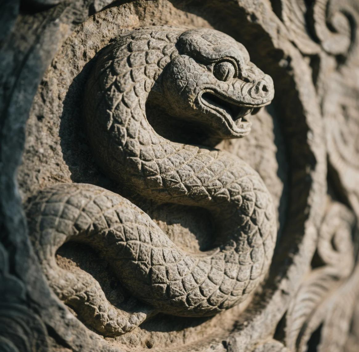 幽深墓道,村民老王手持电筒的手微微颤抖。一尊盘踞在石座上的蛇形石雕,在微弱光线下泛着奇异光泽。他下意识伸手触碰石雕表面,