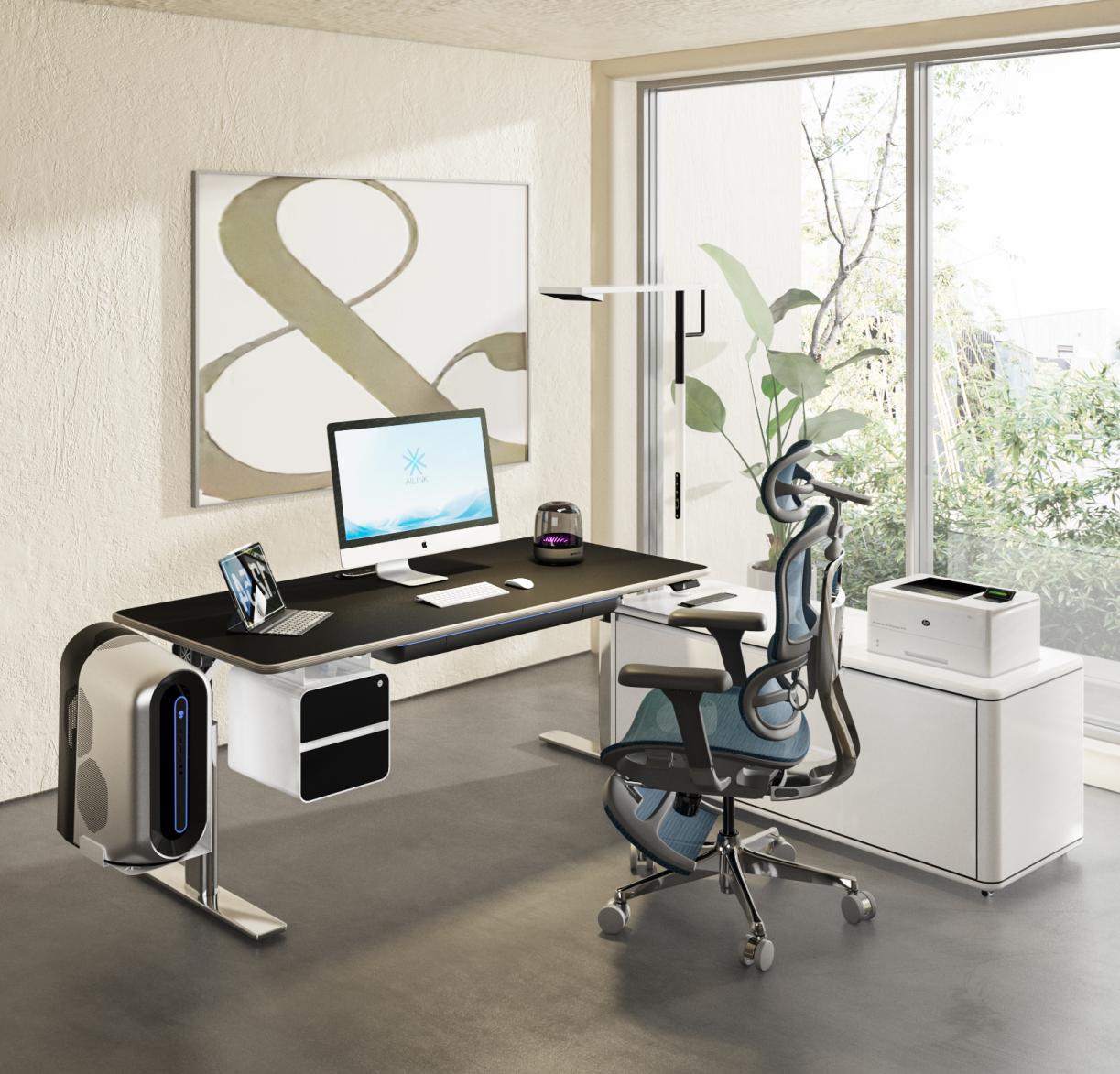 智能升降桌并非 “电动升降桌的升级版”,而是以升降功能为基础,融合智能光环境、智能收纳系统、场景算法等技术,实现 “高度自适应、环境可联动、需求能匹配” 的办公 / 家居生态终端。它打破了传统家具的静态属性,通过软硬件协同,成为连接人、空间与设备的智能枢纽。