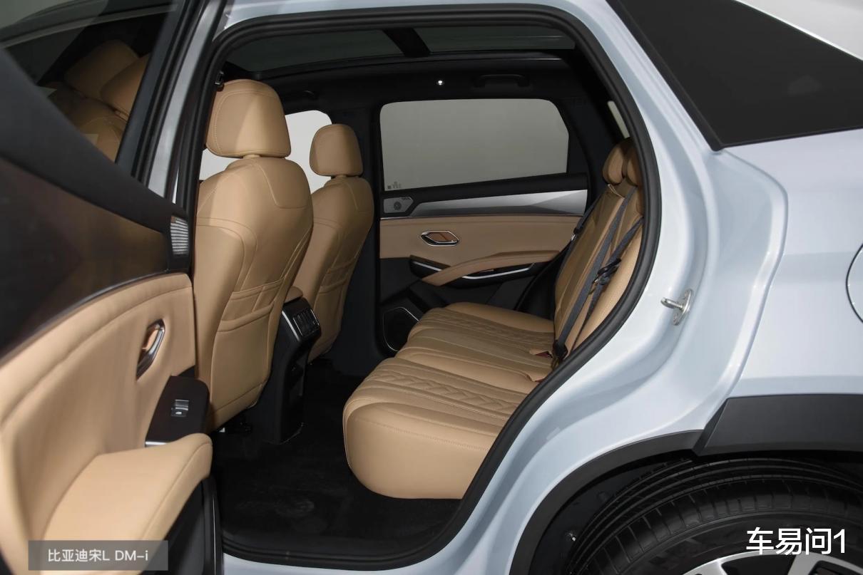 也是因此,在空间部分,宋L DM-i为178cm的乘客提供了1拳+的头部空间,二排也有1拳左右,腿部空间则达到了2拳,应该说除了中间位置外,4座同乘的话,每个位置上还是比较宽绰的。