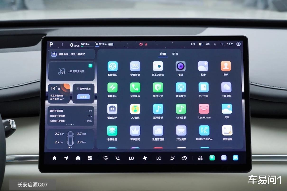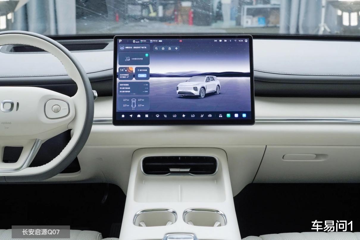 长安启源Q07算上车外能投影的全彩DLP大灯,前排有15.4英寸触控+49英寸AR-HUD+12.8英寸副驾屏、后排能拓展Pad屏的它,能实现五屏联动,加上用的是8155芯片,应该说想体验智能科技,它会更到位、更有趣一些。