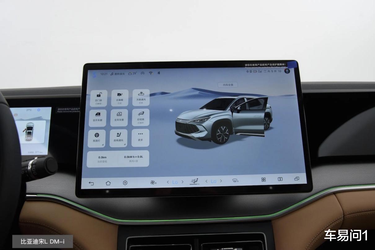 其中,宋L DM-i还提供了10扬声器的燕飞利仕品牌音响,也能小幅调节二排的靠背角度来适应用户坐姿,另外,它的天窗是可以打开的,配合智能香氛,春秋季节舱内体验很不错。