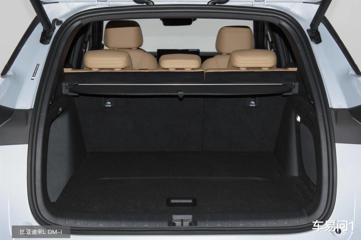 同时,宋L DM-i也有459L的后备厢,日常储物或是4个拉杆箱也放得下,应急时可以放倒二排扩大到1550L,偶尔应付一些家庭运输也完全够了。