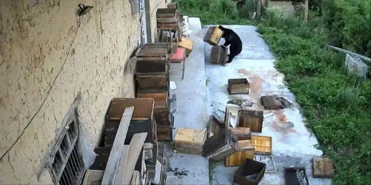 黑熊偷食蜂蜜的现象在国内不少发生,比如湖北襄阳的马桥镇,也有不少村民养蜂,当地亦有黑熊出没,不少的黑熊甚至成了偷食蜂蜜的惯犯了。严重的时候,几个月内就吃掉了上百箱蜂蜜,给蜂农造成了较大损失。