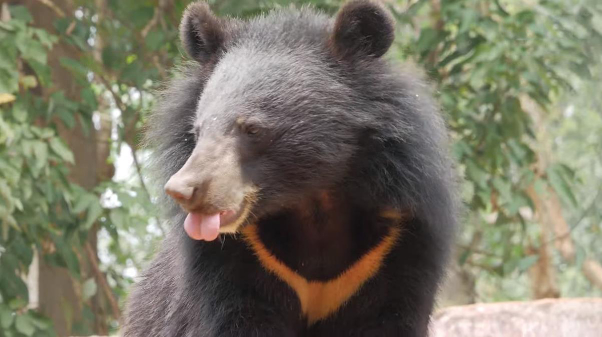 黑熊的学名叫亚洲黑熊,属于国家二级保护动物,东北的人们更喜欢称其为黑瞎子或者熊瞎子。它们成年之后公熊能长到60-200公斤,母熊也有40-140公斤。身上最明显的标志就是在其胸前的位置,有一块“V”字形的白斑。