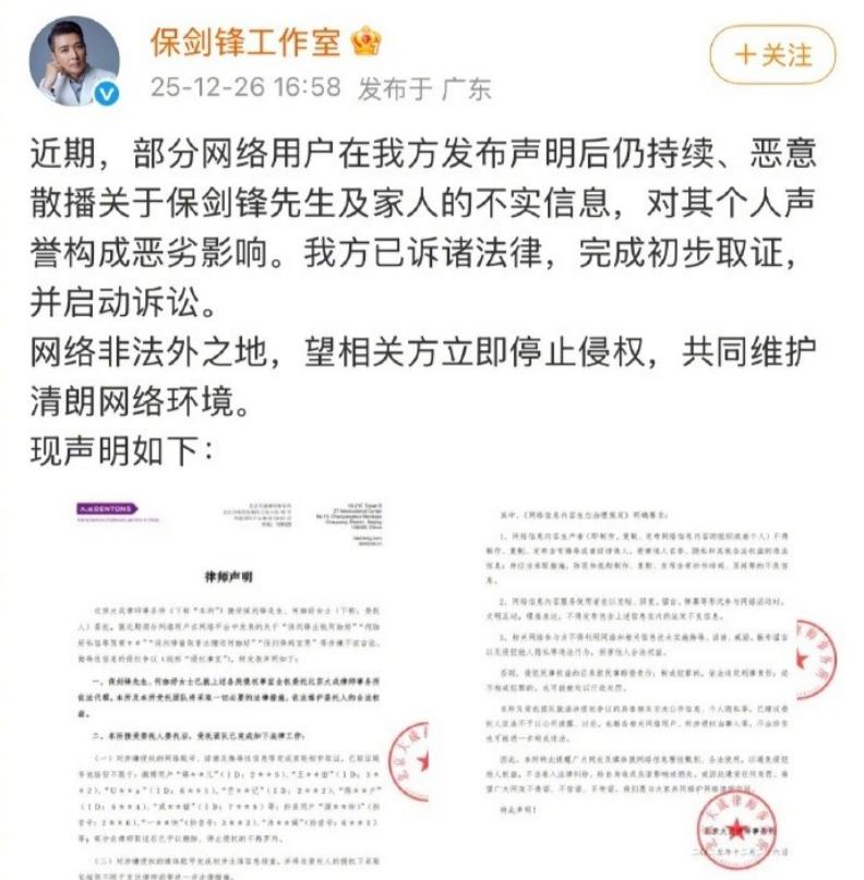 工作室两发声明,坚决否认所有言论,称已提起民事诉讼,并呼吁“勿参与网络暴力”。