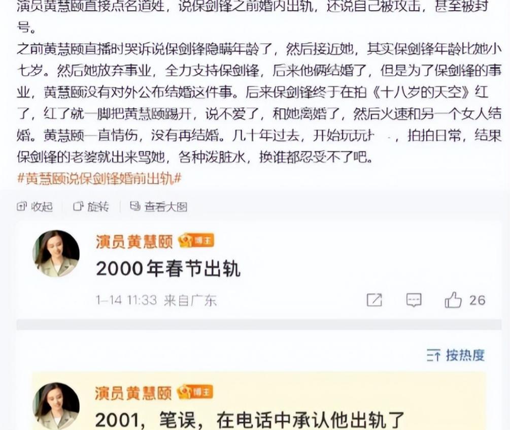 黄慧颐称,2006年保剑锋在拍《小城往事》时结识何珈好,而自己直到2007年才被单方面告知分手。