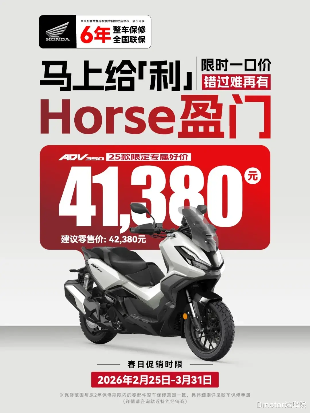 而定位更偏向跨界风格的ADV350,也同步下调至41,380元,虽幅度不算夸张,但释放出明确态度。