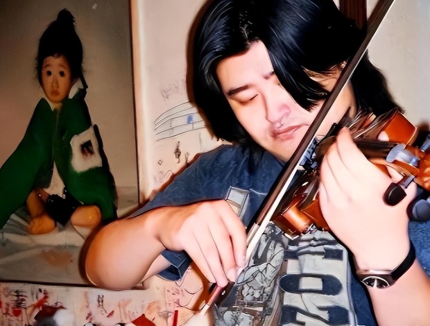 大学时期,他的艺术小火苗又噌的一下子蹿得老高,你看他,长发甩得跟摇滚明星一样,背着吉他,在校园里各种潇洒走位,音乐才华是挡都挡不住。