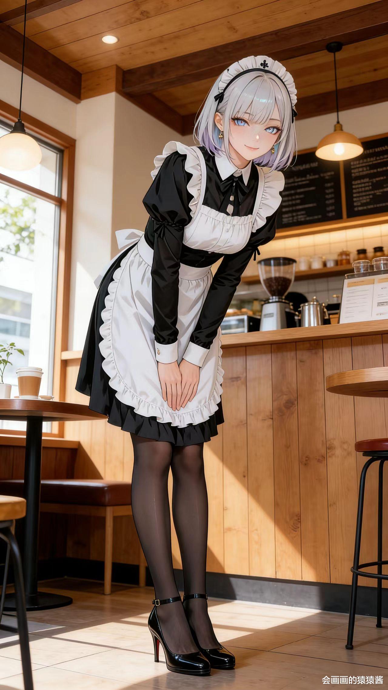 ComfyUI 提示词(欧式花园女仆风)竖版构图,二次元少女,银灰渐变紫短发,黑白女仆装(泡泡袖 + 荷叶边围裙 + 发饰),黑色高跟鞋,双手叉腰的干练姿态,欧式复古花园背景(白色雕花建筑、修剪整齐的绿植、盛放的玫瑰),明媚暖调阳光,细腻缎面质感,蓬松荷叶边肌理,高清 8K,写实插画风格,清新浪漫氛围。