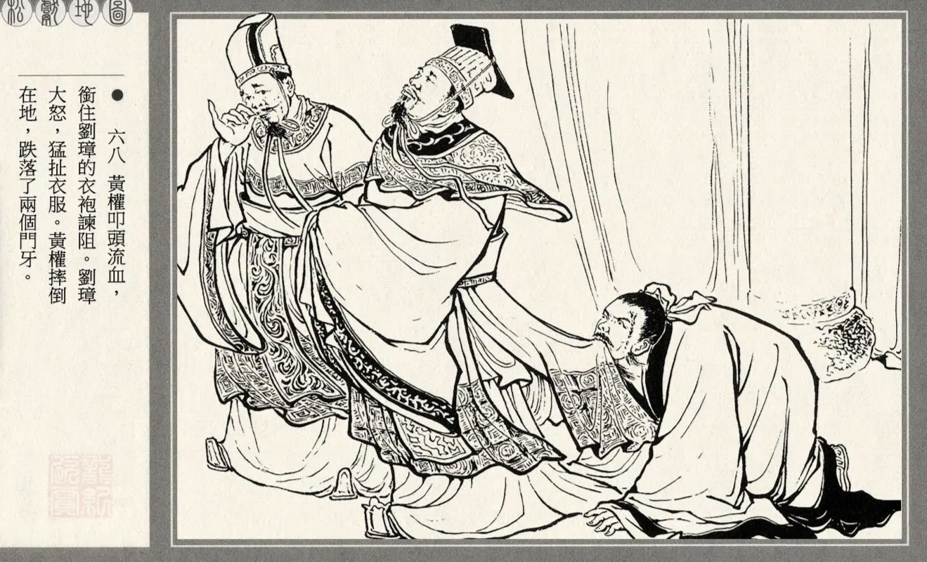可刘璋不仅不信黄权的话,还要亲自去涪城迎接大哥刘备。黄权跪在地上,磕着响头,像一只忠犬一样咬住刘璋的衣襟,只为阻止刘璋去送死。这让刘璋大为恼火,一扯衣服,直接拽掉黄权两颗门牙。为主子尽忠尽到这份上,不禁让读者为之心酸。