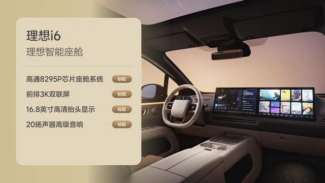 理想i6搭载87.3度的5C超充电池,后驱版本CLTC续航里程720公里。全车标配Nappa真皮座椅,并标配四座通风、五座加热和前排十点按摩,后排右侧配备皇后座椅。理想i6还标配全铝悬架、四个高性能液压衬套及CDC连续可变阻尼减振器。此外,理想i6标配AD Max高级辅助驾驶系统,搭载ATL全天候激光雷达和NVIDIA Thor-U芯片,支持VLA司机大模型。理想i6全国统一零售价24.98万元。
