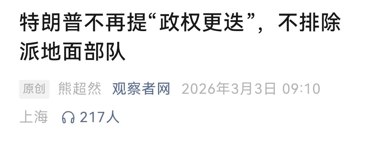 但美国内部有了解实情的人,这不,美防长赫格塞思于是赶紧出来打圆场,公开表态这不是政权更迭战争,美国不会再陷进无休止的战争。