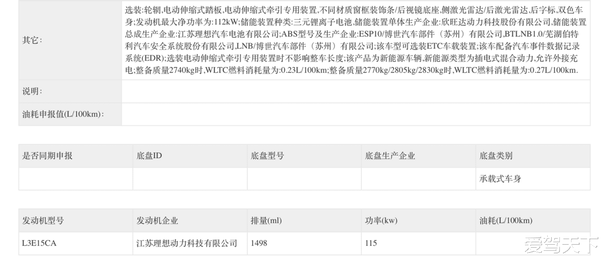 小鹏L03从申报图来看,小鹏L03几乎长着和小鹏MONA M03同款前脸,但身型变成了SUV,长宽高分别为4650(4672)/1920/1600mm,轴距为2850mm,整体参数与小鹏MONA M03较为接近。