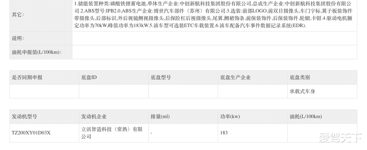 动力上,小鹏L03目前只申报了单电机版,峰值功率183kW,电池来自中创新航提供的磷酸铁锂。