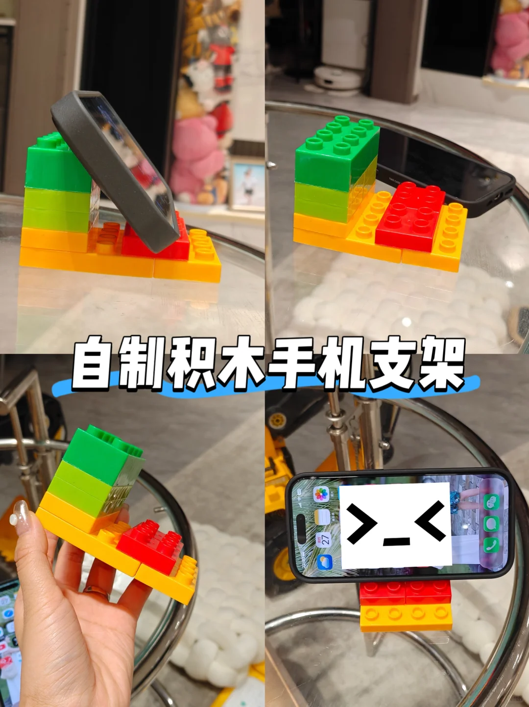 孩子不玩的积木,也可以改造手机支架,把积木搭建成支架的形状,然后用来固定手机,平板电脑都可以彻底解放双手。