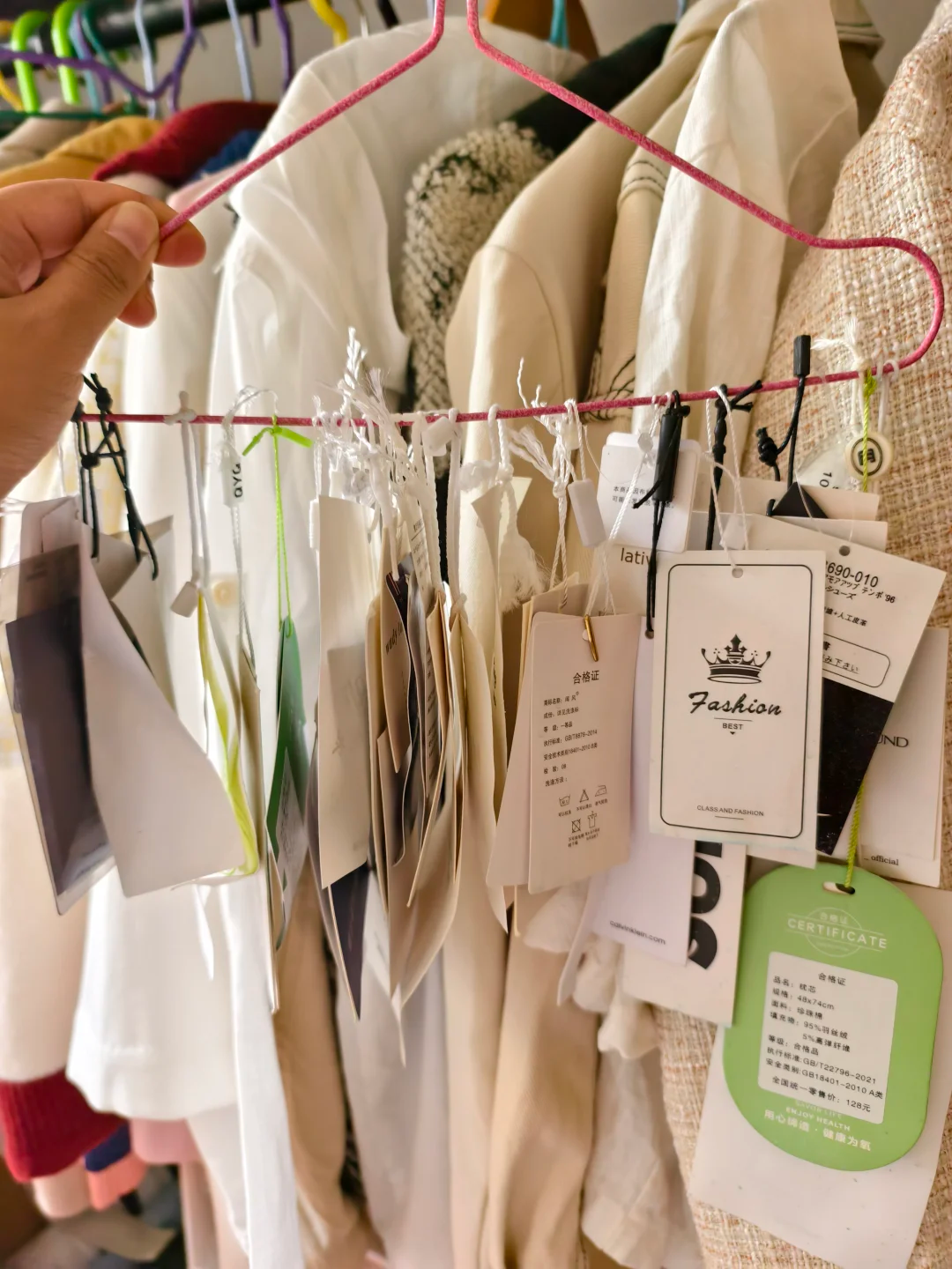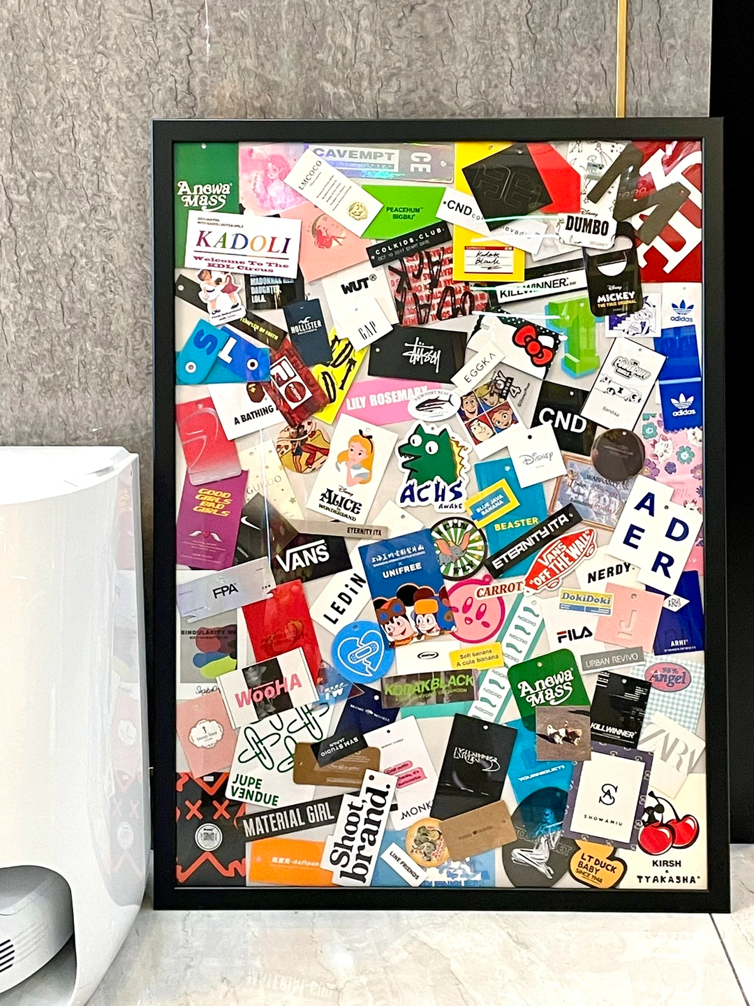 衣服上面的吊牌也可以收集起来,然后自备画框,把这些吊牌全部都粘贴在画框上摆放在家里当做装饰画很好看,关键是没有花钱。