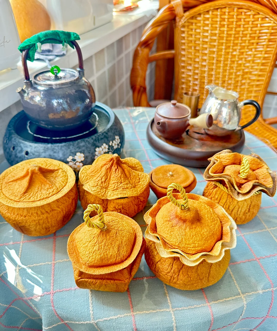 制作好的柚子皮收纳罐,堪称艺术品,放在厨房,用来收纳食物,又好看又实用,也可以放在茶桌上用来收纳茶叶,当做茶叶罐。
