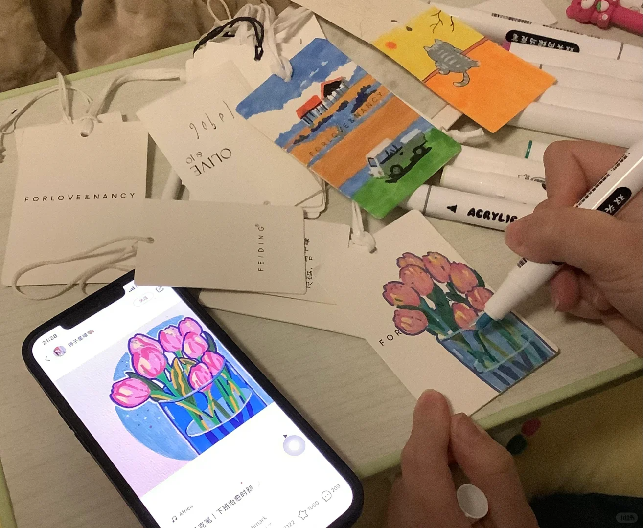 买衣服的时候,衣服上面有这种吊牌,很多人都是拆下来直接扔掉了,其实衣服上面的吊牌还可以二次利用,把衣服上面的吊牌制作成书签,可以简单涂鸦,或者用贴纸装饰一下。