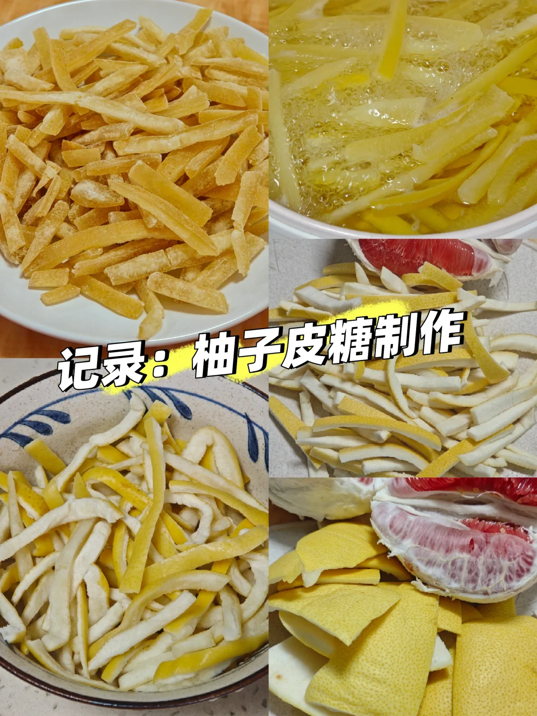 吃完的柚子皮可以制作柚子皮糖,又清香又甘甜,而且还有止咳化痰的功效。当做给孩子的小零食也很不错,准备柚子皮,冰糖和水。