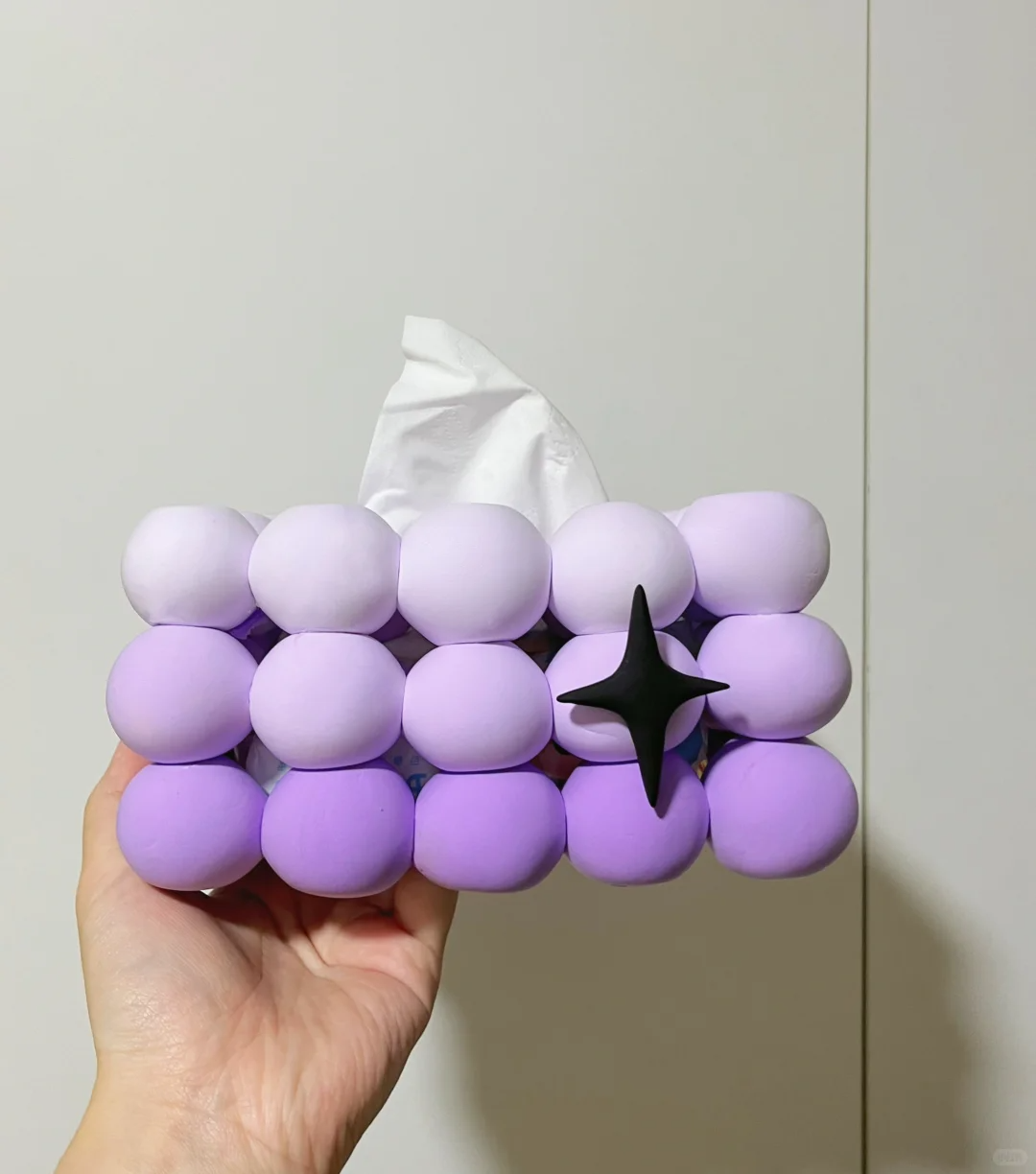 孩子不玩的粘土,还可以做一个高颜值的纸抽盒,把粘土团成球之后。全部固定在一起,等到粘土干了就可以用了。