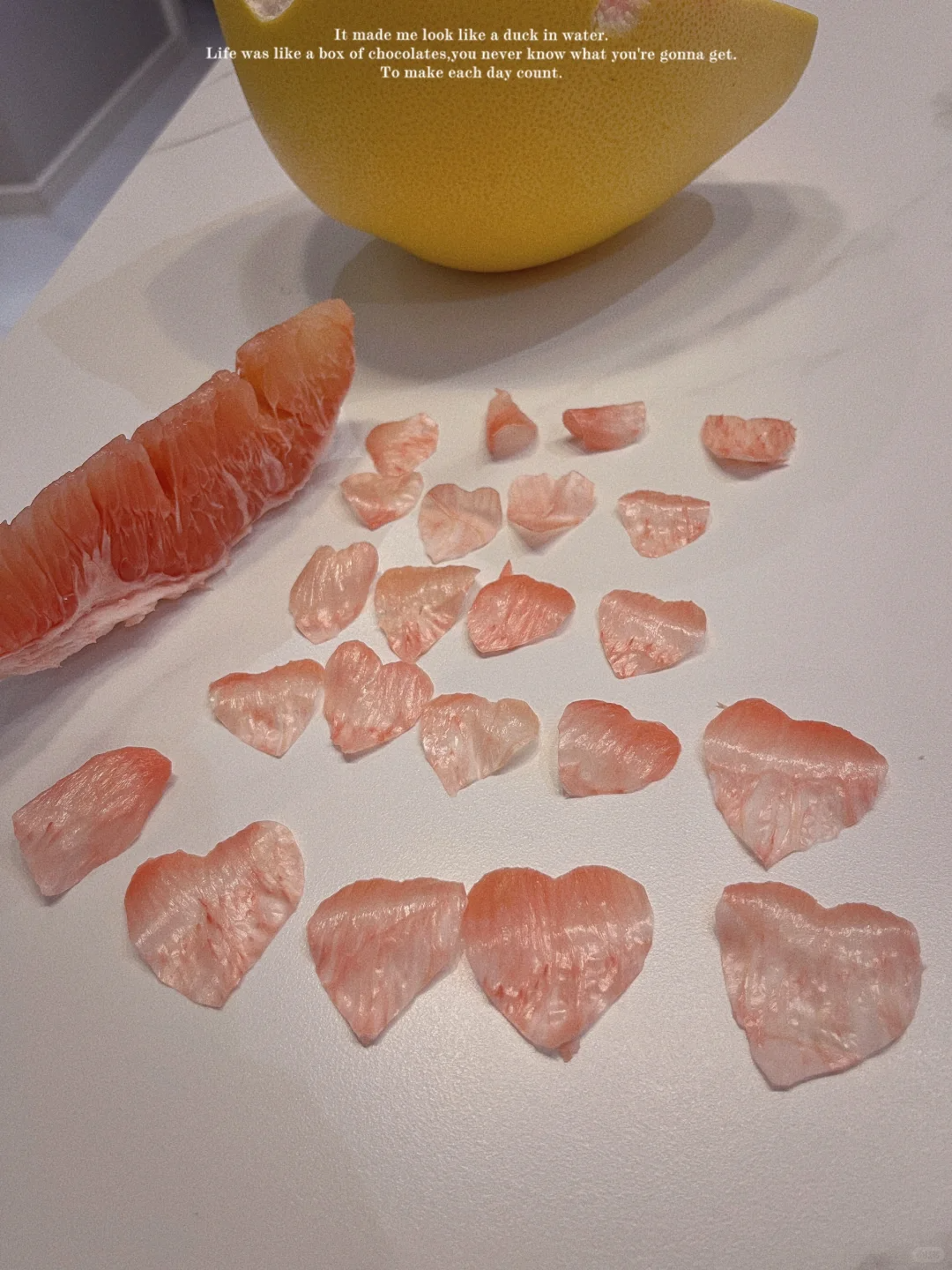 在吃这种红心柚子的时候,可以将柚子上面薄薄的一层皮留下来,然后制作手工玫瑰花,制作好的手工柚子皮玫瑰花,栩栩如生,跟真花一样,放在家里,赏心悦目。